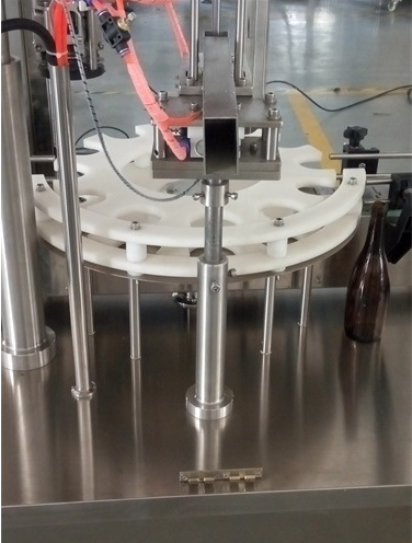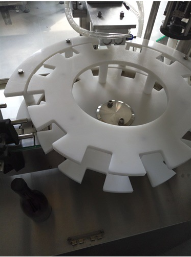 1,全自動(dòng)液體灌裝壓塞鎖蓋一體機(jī)采用圓盤(pán)式理瓶,自動(dòng)進(jìn)瓶;