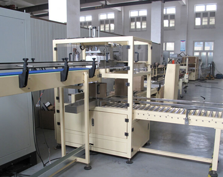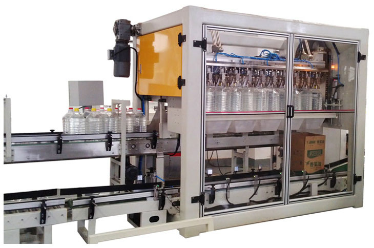 2.5升食用油開裝封箱包裝流水線是由開箱機、動力輥筒輸送機、自動折蓋封箱機與2臺自動打包機組合而成。采用德新技術,具有當今際先水平,突破傳統(tǒng)機械結構,采用機、電、氣、光、磁為一體的高新技術,適用于將瓶子自動裝進紙(塑料)箱內(nèi),并且產(chǎn)品規(guī)格和品種更新只需改變機械手,采用優(yōu)質(zhì)進口件,結構緊湊、生產(chǎn)效率極高、機械運行穩(wěn)定、精確、操作簡單、維護方便、故障率低、自動化程度高、能自動調(diào)節(jié)速度,適用于啤酒、飲料、食品、醫(yī)藥、化工自動裝箱工序。